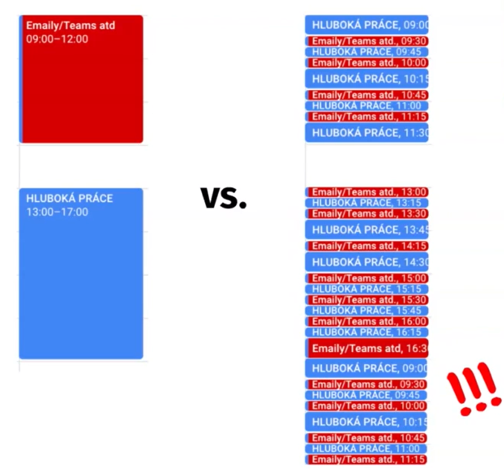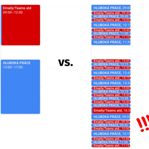 Jsem zvyklý na timeblocking, ale tohle bude chtít větší kalibr. Rád bych v roce 2026 nastavil v práci takovou strukturu, kdy budu ideálně 2 dny v týdnu úplně bez callů/schůzek. Jak interních tak klientských. Vím, že to byznys náš i klientů posune reálně nejvíc.